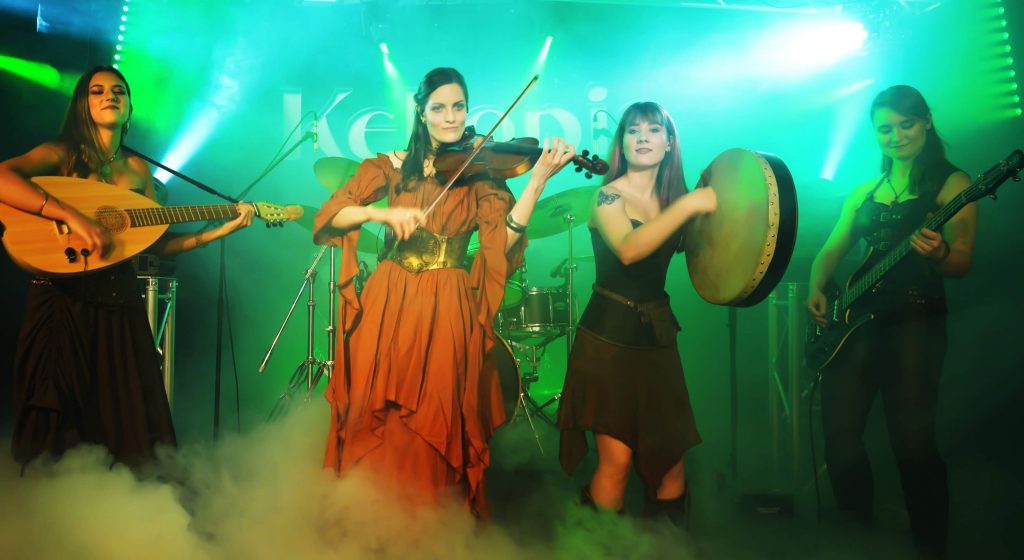 Die Band Keltania, das sind vier junge Musikerinnen, die traditionelle keltische und mittelalterliche Musik mit modernen Rockelementen verbinden. Akustische Instrumente, wie Geige, Laute und Trommeln schaffen eine authentische Klangbasis, die durch E-Gitarren und Schlagzeug kraftvoll erweitert wird.